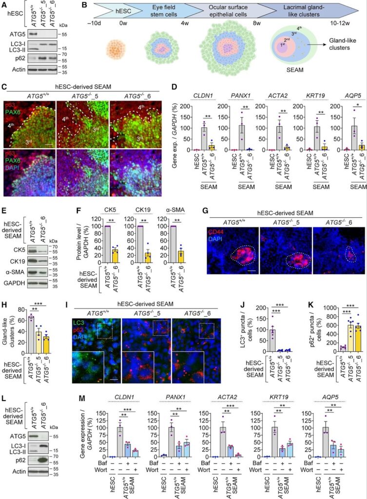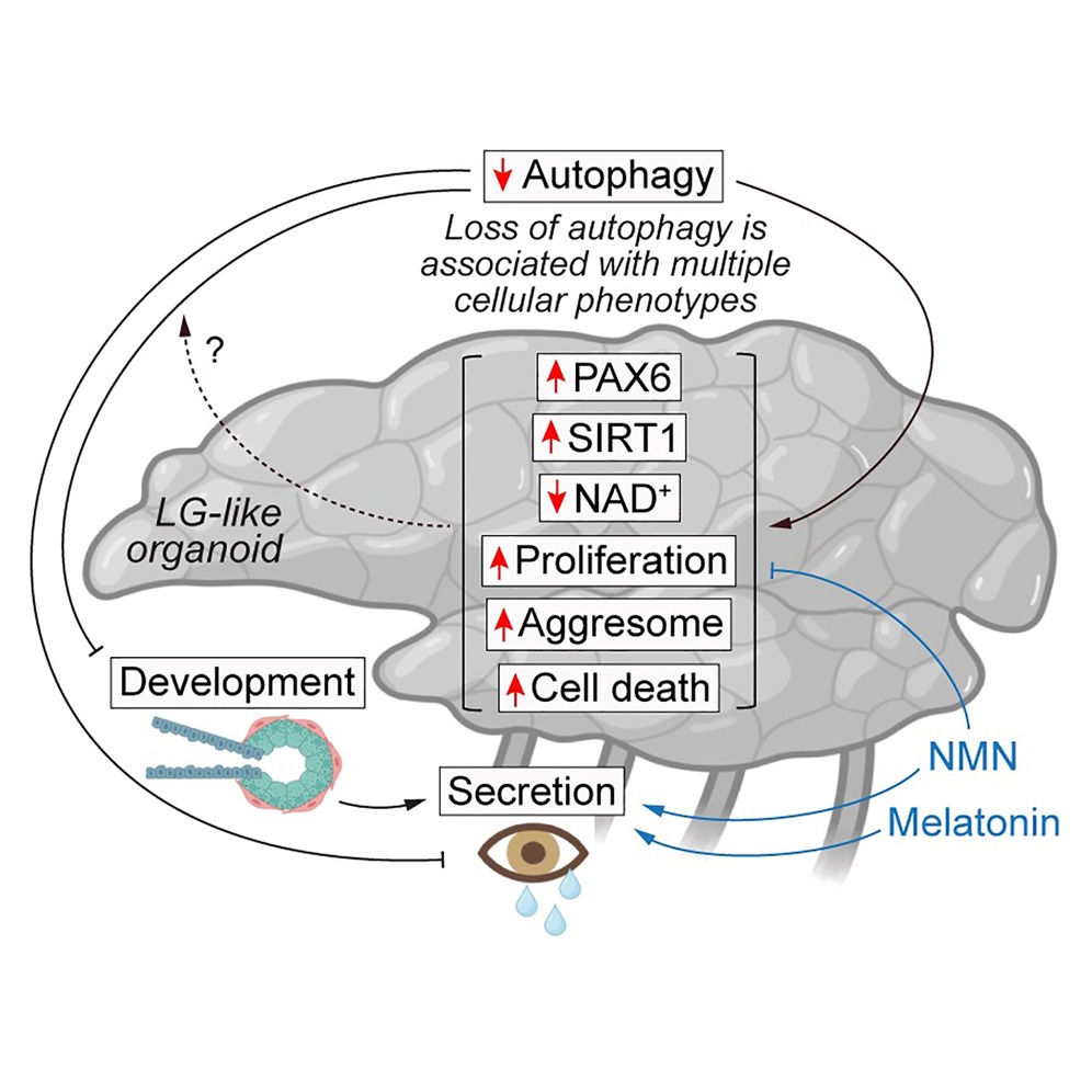 Published in Stem Cell Reports, the study shows that when autophagy is disrupted, human lacrimal gland-like organoids fail to develop properly and demonstrate impaired secretory function. The findings connect cellular maintenance pathways to tear gland performance.*